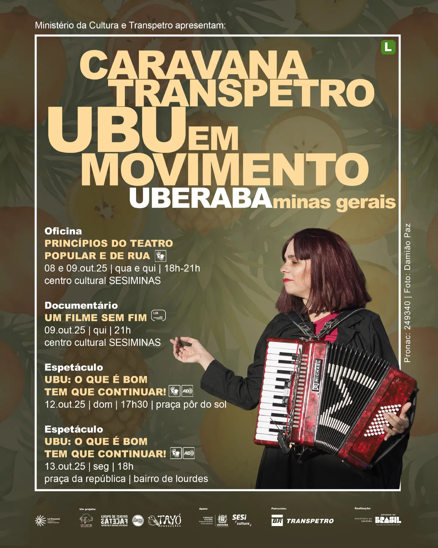 A CARAVANA TRANSPETRO UBU EM MOVIMENTO foi selecionada pelo Programa Transpetro em Movimento e possui patrocínio da Transpetro.