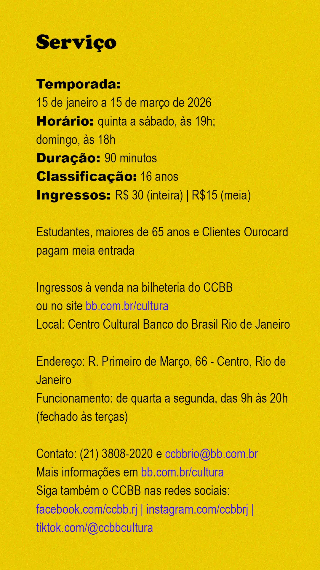 Tudo isso só pôde ser concretizado graças a mais um encontro inédito na trajetória dos Clowns: a parceria com o Centro Cultural Banco do Brasil, cuja crença nesse ajuntado entre dois grupos nordestinos possibilitou estarmos estreando essa obra num dos palcos mais importantes do Teatro brasileiro.