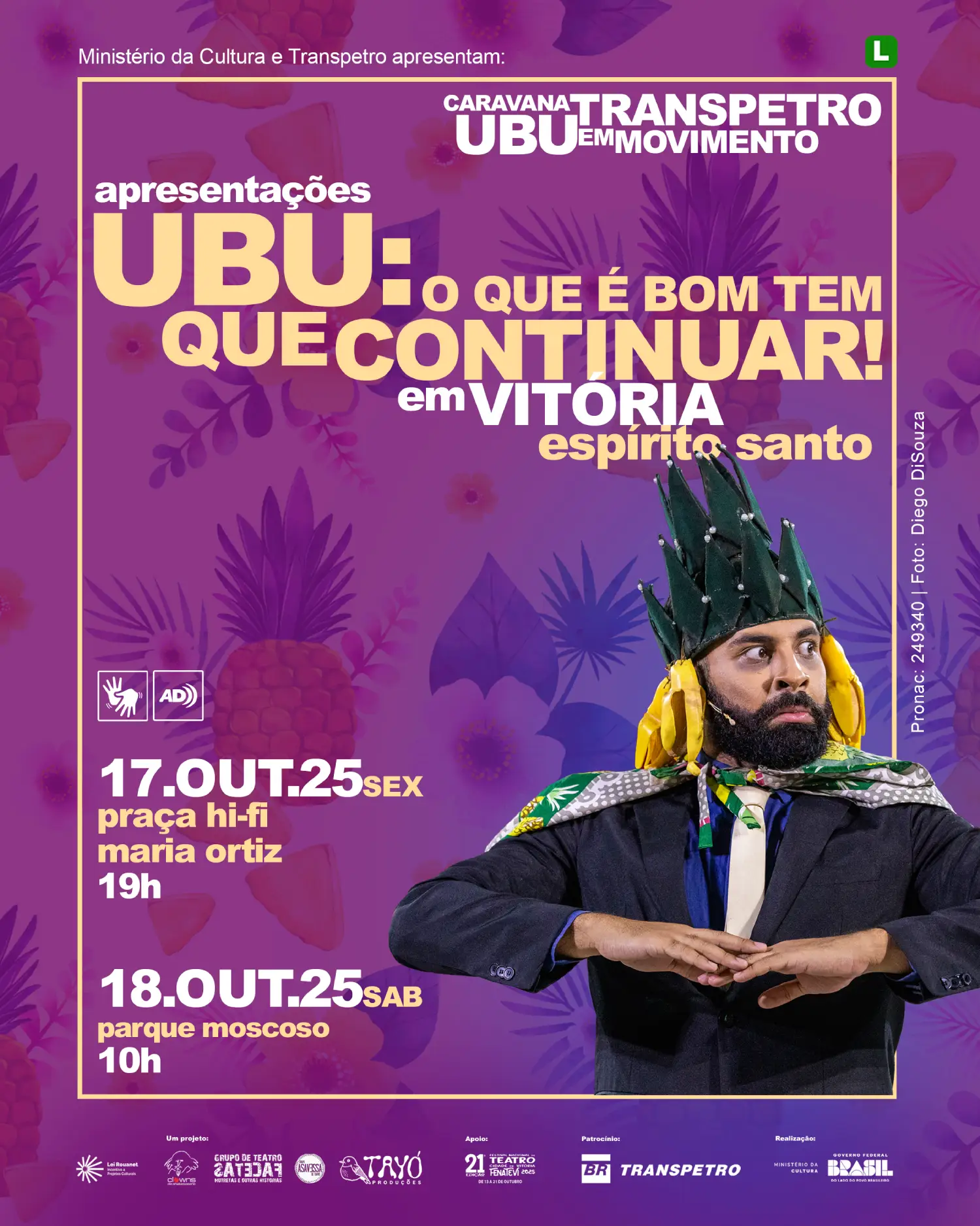 sex17out19:3021:30Ubu: O que é bom tem que continuar!Praça Hi-Fi, Av. Jerônimo Vervloet, 350 - Maria Ortiz, Vitória - ES, 29070-350-ESPETÁCULOS